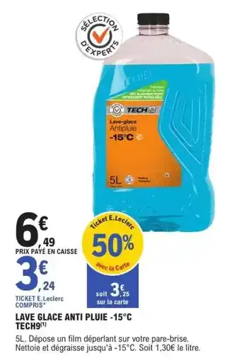 En plus de l'offre E.leclerc - lave glace anti pluie, E.Leclerc L'Auto propose une large gamme de produits. Consultez le Catalogue E.Leclerc L'Auto hebdomadaire pour découvrir les meilleures offres et promotions. En plus de E.leclerc - lave glace anti pluie, il y a aussi : LAVE GLACE ANTI PLUIE -15°C TECH9, Lave-glace anti-pluie & Anti pluie.