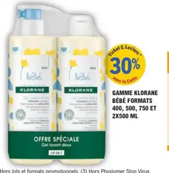 Le prix de l'offre Gamme klorane bébé formats se trouve également en haut de la page, ainsi que la date à laquelle l'offre est disponible. Vous pouvez également vérifier les prix dans le Catalogue E.Leclerc Parapharmacie actuel ou sur le site Internet de E.Leclerc Parapharmacie. Les offres vous permettent d'acheter les produits E.Leclerc Parapharmacie au prix le plus bas.