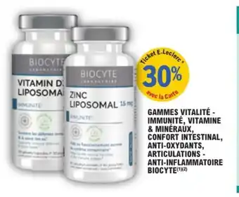 Actuellement en offre chez E.Leclerc Parapharmacie : Gammes vitalité immunité vitamine & minéraux confort intestinal anti-oxydants articulations anti-inflammatoire biocyte ✅ Valable du 30-12 au 24-01.