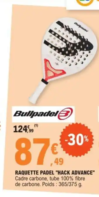 Actuellement en offre chez E.Leclerc Sport : BULLPADEL Raquette padel hack advance ✅ Valable du 14-04 au 16-05.