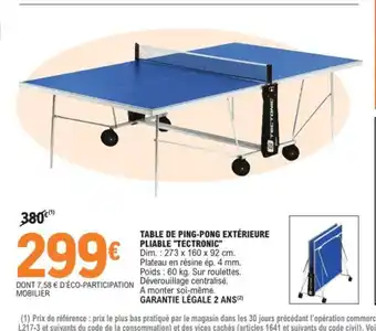 Actuellement en offre chez E.Leclerc Sport : Table de ping-pong extérieure pliable tectronic ✅ Valable du 14-04 au 16-05.