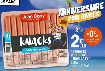 Actuellement en offre chez E.Leclerc : 10 KNACKS PUR PORC JEAN CABY ✅ Valable du 24-02 au 8-03.