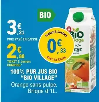 Actuellement en offre chez E.Leclerc : 100% PUR JUS BIO “BIO VILLAGE” ✅ Valable du 10-02 au 22-02.