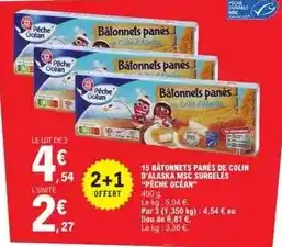 Actuellement en offre chez E.Leclerc : 15 bâtonnets panés de colin d'alaska msc surgelés ✅ Valable du 3-02 au 14-02.