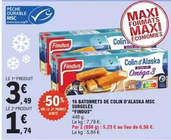 Offre 16 BÂTONNETS DE COLIN D'ALASKA MSC SURGELÉS “FINDUS” chez E.Leclerc