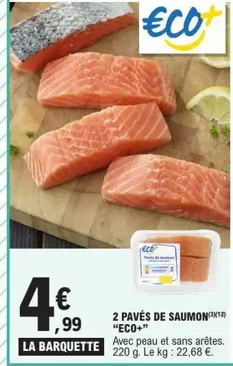 Actuellement en offre chez E.Leclerc : 2 PAVÉS DE SAUMON “ECO+” ✅ Valable du 30-12 au 10-01.