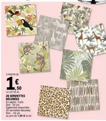 20 SERVIETTES DÉCORÉES offres et promotions en ligne chez E.Leclerc