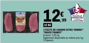 Actuellement en offre chez E.Leclerc : 3 FILETS DE CANARD EXTRA TENDRE DOUCE FRANCE ✅ Valable du 3-02 au 14-02.
