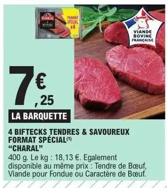 Offre 4 BIFTECKS TENDRES & SAVOUREUX FORMAT SPÉCIAL CHARAL chez E.Leclerc
