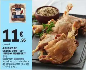 Actuellement en offre chez E.Leclerc : 4 Cuisses de Canard Confites 'Maison Montfort' ✅ Valable du 17-02 au 28-02.