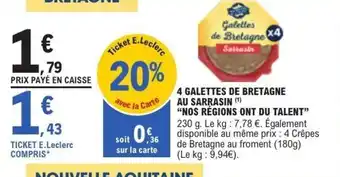 Actuellement en offre chez E.Leclerc : 4 galettes de bretagne au sarrasin nos régions ont du talent ✅ Valable du 10-03 au 21-03.