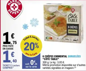 Offre 6 crêpes emmental surgelées côté table chez E.Leclerc