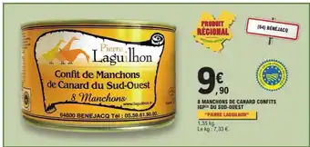En plus de l'offre 8 MANCHONS DE CANARD CONFITS IGP DU SUD-OUEST, E.Leclerc propose une large gamme de produits. Consultez le Catalogue E.Leclerc hebdomadaire pour découvrir les meilleures offres et promotions. En plus de 8 MANCHONS DE CANARD CONFITS IGP DU SUD-OUEST, il y a aussi : MANCHONS DE CANARD CONFITS IGP SUD-OUEST, MANCHONS DE CANARD CONFITS & Aiguillette de canard IGP du Sud-Ouest.