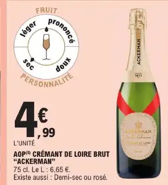 Actuellement en offre chez E.Leclerc : Ackerman aop crémant de loire brut ✅ Valable du 24-02 au 7-03.