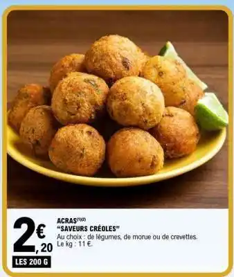 En plus de l'offre ACRAS, E.Leclerc propose une large gamme de produits. Consultez le Catalogue E.Leclerc hebdomadaire pour découvrir les meilleures offres et promotions. En plus de ACRAS, il y a aussi : Acras de morue, Acras de morue & Acras de morue.