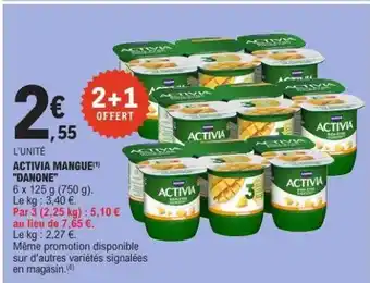 Actuellement en offre chez E.Leclerc : ACTIVIA MANGUE DANONE ✅ Valable du 17-03 au 28-03.
