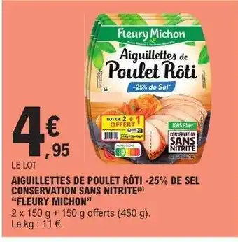 AIGUILLETTES DE POULET RÔTI -25% DE SEL CONSERVATION SANS NITRITE “FLEURY MICHON” : offres et promos E.Leclerc à découvrir