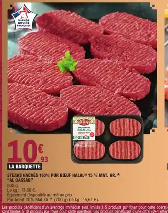 AL QASSAB Steaks hachés 100% pur bœuf halal 15% mat. gr. : offres et promos E.Leclerc à découvrir