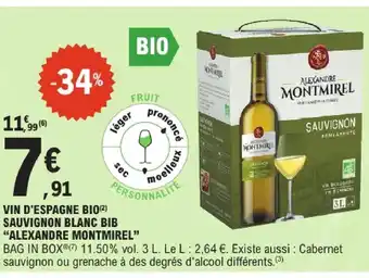 Actuellement en offre chez E.Leclerc : Alexandre montmirel vin d'espagne bio ✅ Valable du 7-04 au 18-04.
