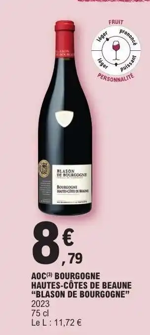 Actuellement en offre chez E.Leclerc : AOC Bourgogne Hautes-Côtes de Beaune Blason de Bourgogne ✅ Valable du 17-03 au 28-03.