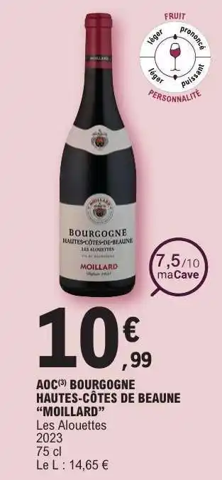 Actuellement en offre chez E.Leclerc : AOC Bourgogne Hautes-Côtes de Beaune Moillard ✅ Valable du 17-03 au 28-03.