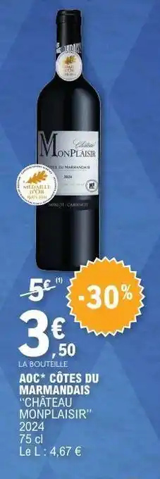 Offre AOC* CÔTES DU MARMANDAIS “CHÂTEAU MONPLAISIR” chez E.Leclerc