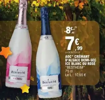 Actuellement en offre chez E.Leclerc : AOC* CRÉMANT D'ALSACE DEMI-SEC ICE BLANC OU ROSÉ BESTHEIM ✅ Valable du 17-02 au 28-02.