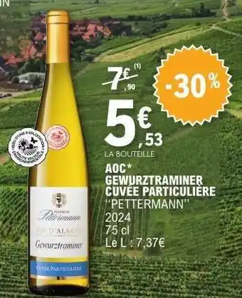 Offre AOC* Gewurztraminer Cuvée Particulière Pettermann chez E.Leclerc