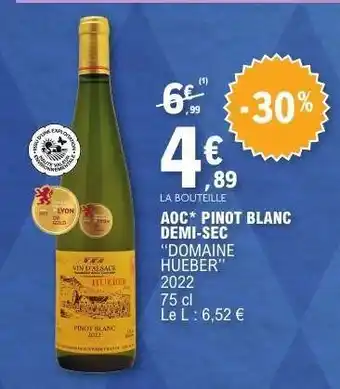 AOC* Pinot Blanc Demi-Sec offres et promotions en ligne chez E.Leclerc