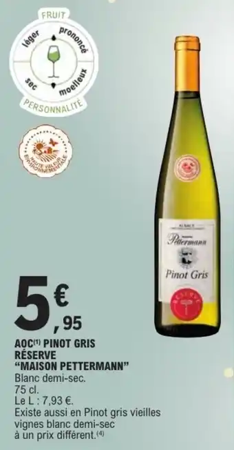 Actuellement en offre chez E.Leclerc : Aoc pinot gris réserve maison pettermann ✅ Valable du 23-12 au 3-01.