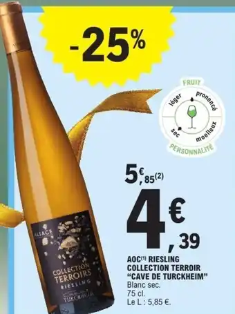 Actuellement en offre chez E.Leclerc : Aoc riesling collection terroir cave de turckheim ✅ Valable du 23-12 au 3-01.