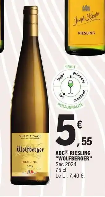 En plus de l'offre AOC Riesling 'Wolfberger', E.Leclerc propose une large gamme de produits. Consultez le Catalogue E.Leclerc hebdomadaire pour découvrir les meilleures offres et promotions. En plus de AOC Riesling 'Wolfberger', il y a aussi : Aop riesling 2024 wolfberger, AOC PINOT GRIS WOLFBERGER & Aoc - aoc vin d'alsace riesling.