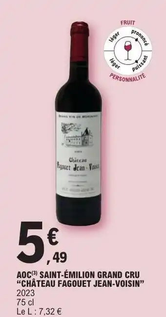 AOC SAINT-ÉMILION GRAND CRU “CHÂTEAU FAGOUET JEAN-VOISIN” : offres et promos E.Leclerc à découvrir