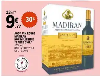 Offre AOC VIN ROUGE MADIRAN NON MILLÉSIME “CARTE D’OR” chez E.Leclerc