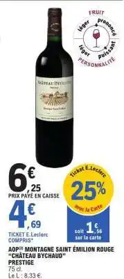 Actuellement en offre chez E.Leclerc : AOP(2) MONTAGNE SAINT ÉMILION ROUGE “CHÂTEAU BYCHAUD” ✅ Valable du 13-01 au 17-01.