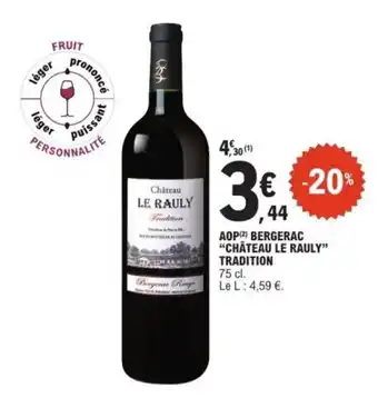 Actuellement en offre chez E.Leclerc : Aop bergerac château le rauly tradition ✅ Valable du 3-02 au 14-02.