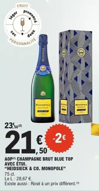 Offre Aop champagne brut blue top avec étui heidsieck & co. monopole chez E.Leclerc