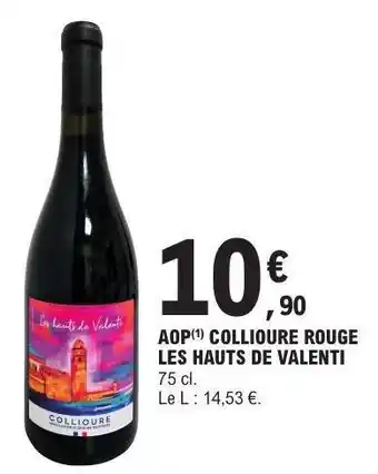 Actuellement en offre chez E.Leclerc : AOP Collioure Rouge Les Hauts de Valenti ✅ Valable du 17-03 au 28-03.