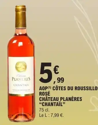 Actuellement en offre chez E.Leclerc : AOP CÔTES DU ROUSSILLON ROSÉ CHÂTEAU PLANÈRES “CHANTAÏL” ✅ Valable du 17-03 au 28-03.
