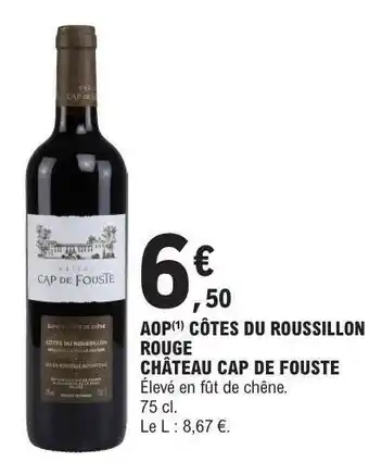 Actuellement en offre chez E.Leclerc : AOP CÔTES DU ROUSSILLON ROUGE CHÂTEAU CAP DE FOUSTE ✅ Valable du 17-03 au 28-03.