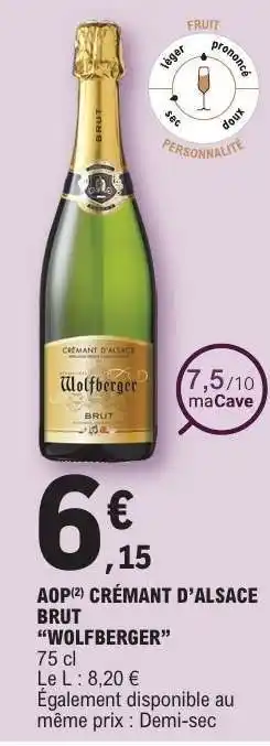 AOP Crémant d'Alsace Brut Wolfberger : offres et promos E.Leclerc à découvrir
