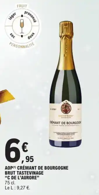 Offre Aop crémant de bourgogne brut tastevinage c de l'aurore chez E.Leclerc
