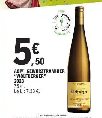 Actuellement en offre chez E.Leclerc : AOP Gewurztraminer 'Wolfberger' 2023 ✅ Valable du 3-02 au 7-02.
