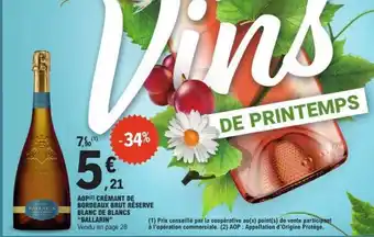 Offre AOPD Crémant de Bordeaux Brut Réserve Blanc de Blancs 'Ballarin' chez E.Leclerc