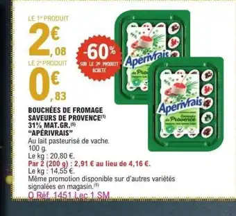 Offre APÉRIVRAIS Bouchées de fromage saveurs de provence 31% mat.gr chez E.Leclerc
