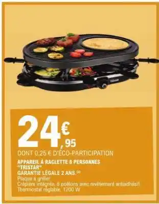 Offre APPAREIL À RACLETTE 8 PERSONNES TRISTAR chez E.Leclerc