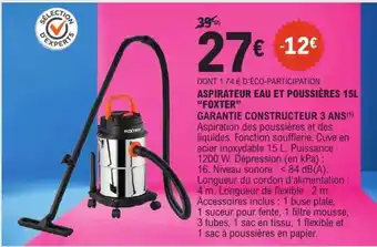 Actuellement en offre chez E.Leclerc : ASPIRATEUR EAU ET POUSSIÈRES 15L 'FOXTER' ✅ Valable du 20-01 au 31-01.