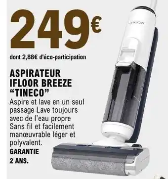 Actuellement en offre chez E.Leclerc : ASPIRATEUR IFLOOR BREEZE “TINECO” ✅ Valable du 27-01 au 8-02.