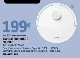 En plus de l'offre Aspirateur robot, E.Leclerc propose une large gamme de produits. Consultez le Catalogue E.Leclerc hebdomadaire pour découvrir les meilleures offres et promotions. En plus de Aspirateur robot, il y a aussi : ASPIRATEUR ROBOT “MOVA”, ASPIRATEUR ROBOT DREAME & Aspirateur Robot Laveur.
