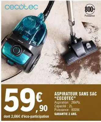 Offre ASPIRATEUR SANS SAC CECOTEC chez E.Leclerc